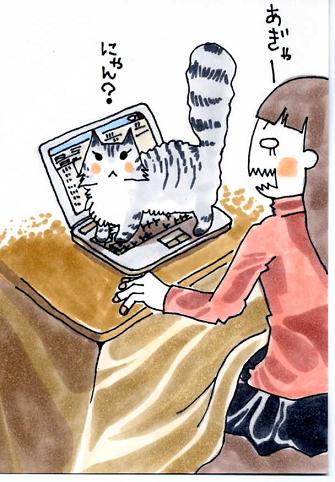 パソコンをさわっていたら、いきなり「にゃー」と言ってニャンコがパソコンの上へ。。。