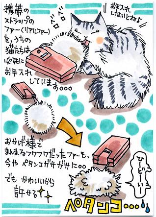 聞いたところ(母談)、どうやらわたしが寝ているときに猫たちはストラップの毛づくろいをしているとのこと。。。
