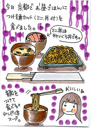 途中、京都でお昼ごはんつけ麺とミニ丼(鮭イクラ丼)を食べました。