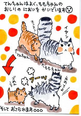 その時に、てんちゃんがこっそり後ろからついて来て ももちゃんのオシリのニオイを